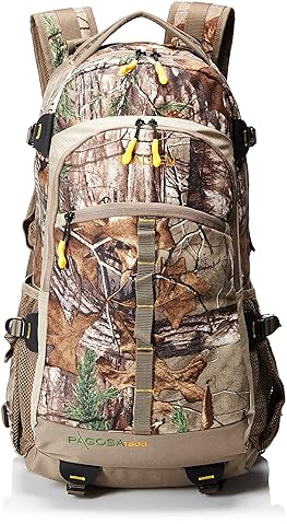 • This backpack comes with many features to make you feel comfortable wearing heavy load all day long such as the padded shoulder straps, the padded back support along with the sternum strap and adjustable waist belt. In addition, theses padded parts are lined with cool mesh to add even more comfort for you on your hunting session.