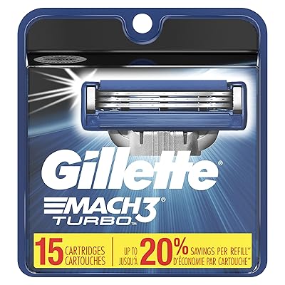 10. Gillette Mach3 Turbo Men’s Razor Blade Refills, 15 Count, Mens Razors / Blades