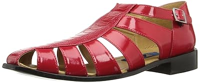 Its Main Features: This sandal is made from leather with synthetic material. It features a square toe design with fisherman inspired straps and reptile embossing at center vamp. There are 3 colors for you to choose from including red, grey and white.