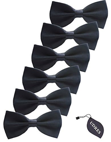 3. UDRES 6 Pack Solid Satin Pre-tied Tuxedo Adjustable Neck Bowtie for Wedding Party
