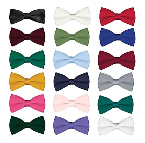 Like the BMC, this is a 5 piece set of adjustable, pre-tied double bowties. A plus for this bow tie is various color options such as red, navy, yellow and grey. There are 19 sets for you to choose from. All of them are made from 100 % of microfiber.